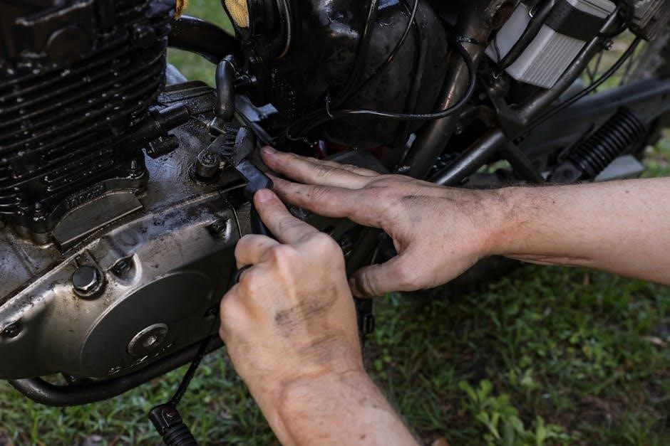 Be mindful of fuel handling; work in well-ventilated areas and avoid open flames. Manuals detail proper procedures for fuel system diagnosis and repair, stressing the importance of leak prevention.